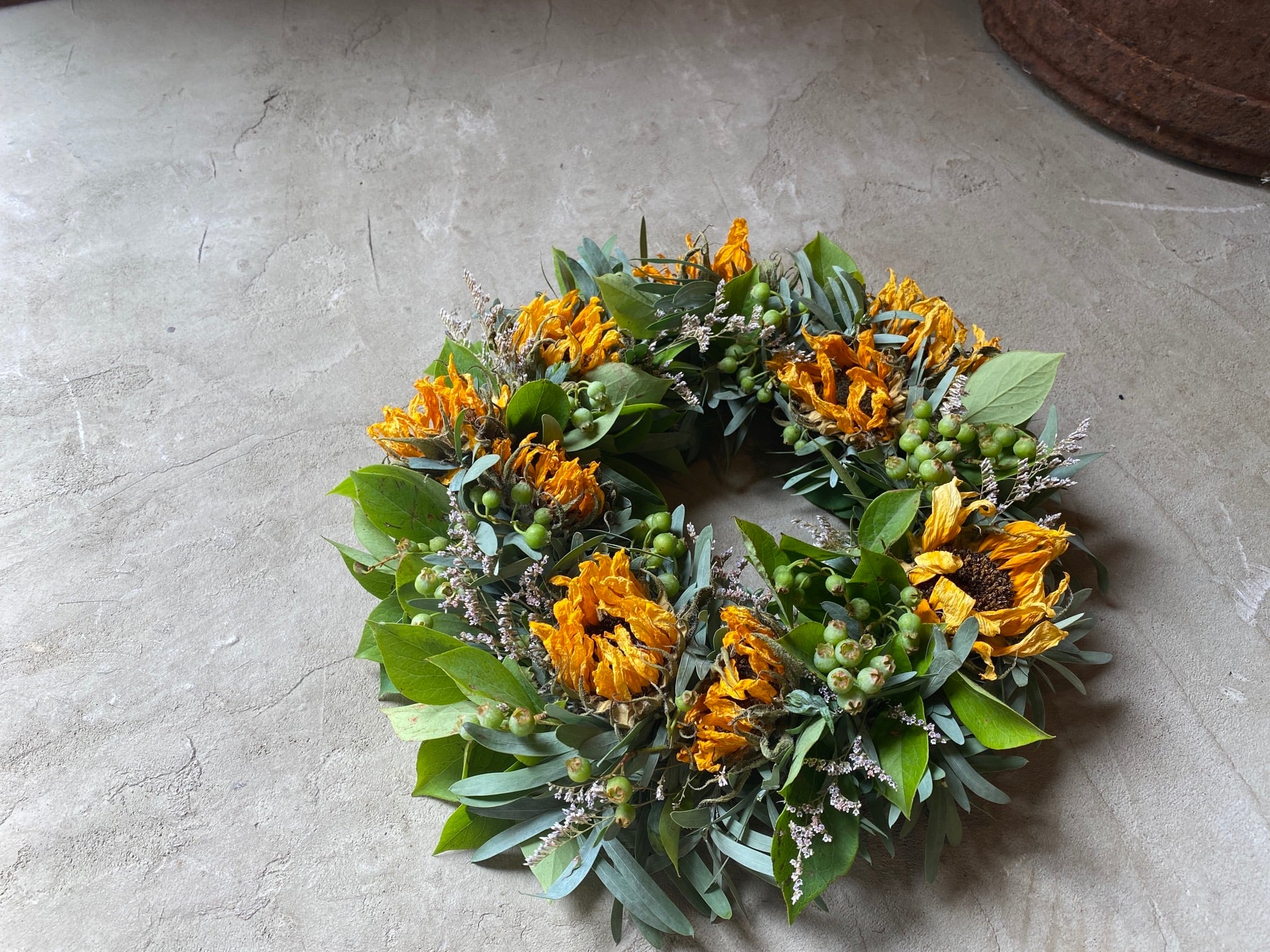 ブルーベリーと向日葵で爽やかな雰囲気に仕上げました。